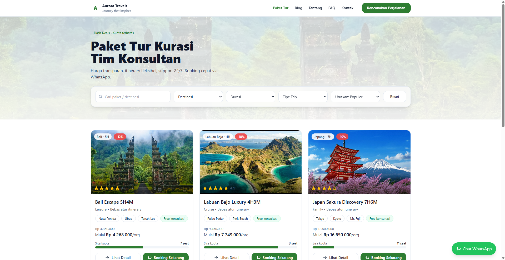Rp 500kPremium Travel Agency template with WhatsApp & Tour Packages.